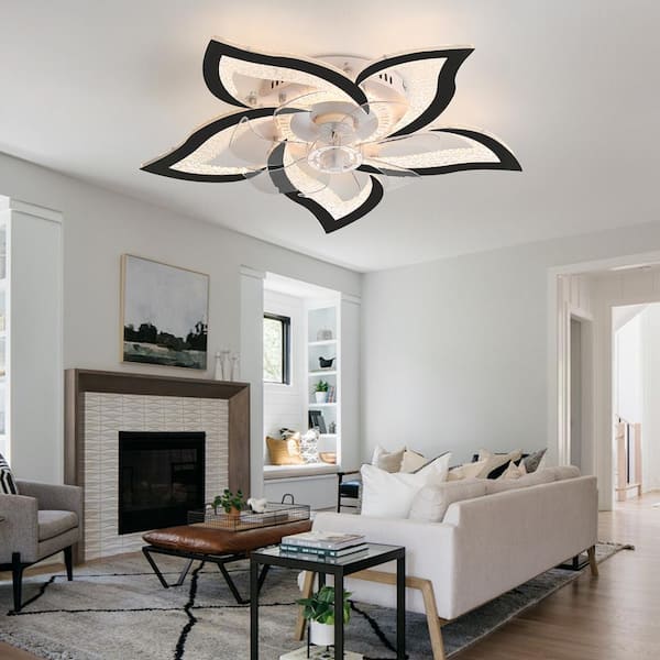Modern 27 in. (2.25 ft.) Indoor White Low Profile Flower Ceiling Fan with LED Dimmable Light and Remote Included Black