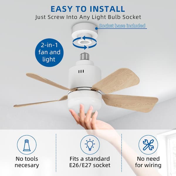 17.7 in. Indoor White Ceiling Fan with Remote, LED Light, Socket