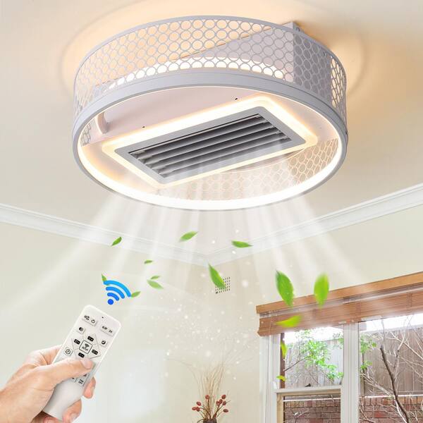 20 in. Indoor Modern White Bladeless Ceiling Fan with LED Light, Adjustable 6-Wind Speeds, Reversible Inverter Motor