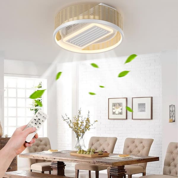 20 in. indoor Brown Ceiling Fans with Lights, Flush Mount Bladeless Ceiling Fan and Remote Control