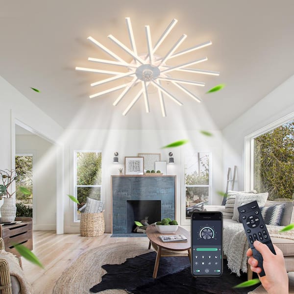 45 in. Indoor Modern White Ceiling Fan with Light, Flush Mount Ceiling Fan with Remote, Dimmable, 3-Color, 6-Speeds