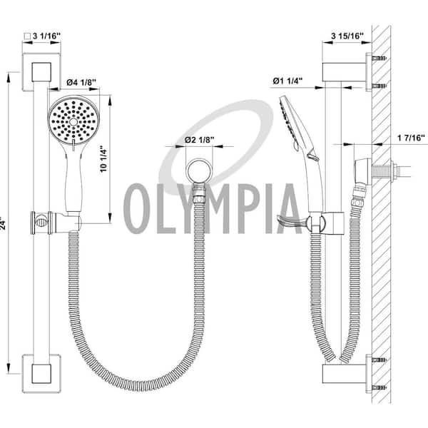 3-Spray Wall Mount Handheld Shower Head 1.75 GPM with Grab Bar in Brushed Nickel
