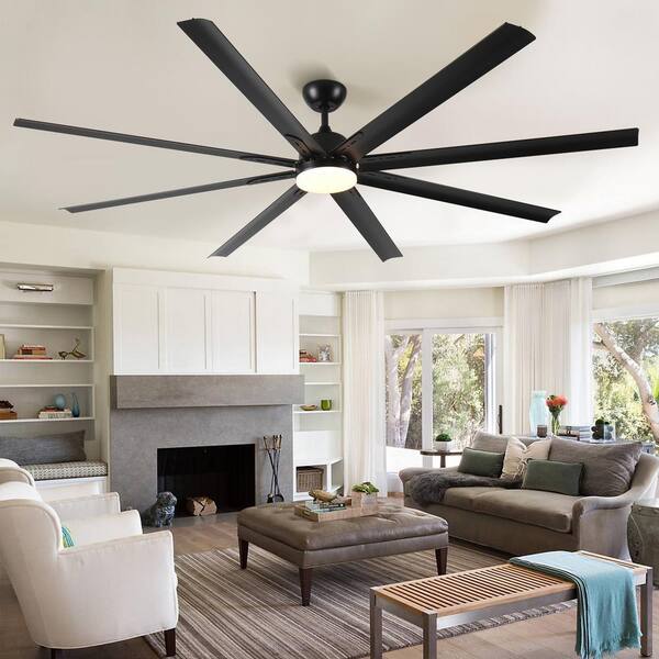 TT 84 in. Industrial Indoor Large Black Ceiling Fans w/ LED Light Kit for Patio, Remote and DC Reversible Motor Included