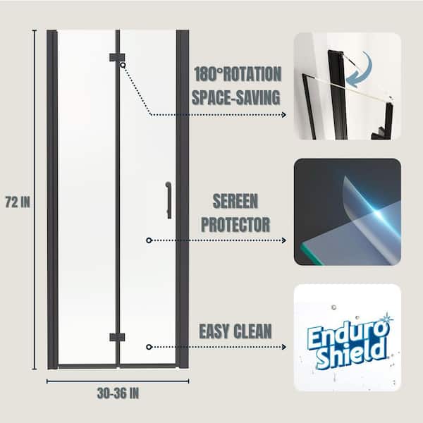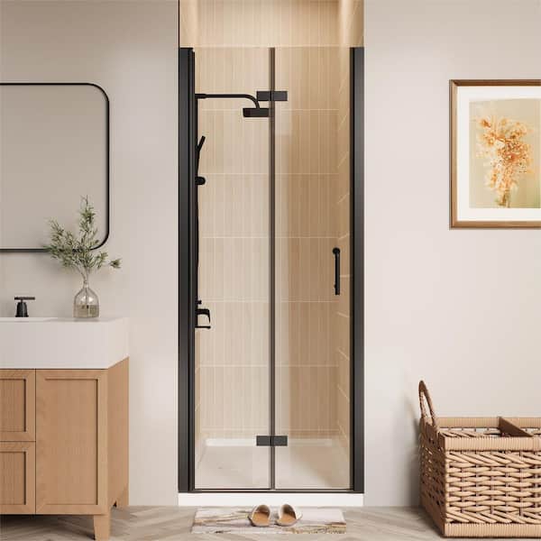30 to 31 - 1/4 in. W x 72 in. H Bi-Fold Frameless Shower Doors in Black with Clear Glass