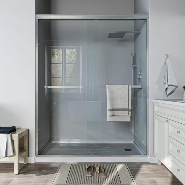 56 in. - 60 in. W x 72 in. H Sliding Framed Shower Door in Brushed Nickel with Clear Glass