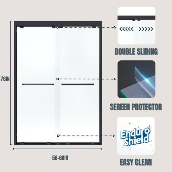 56 to 60 in. W x 76 in. H Sliding Framed Shower Door in Black Finish with Clear Glass