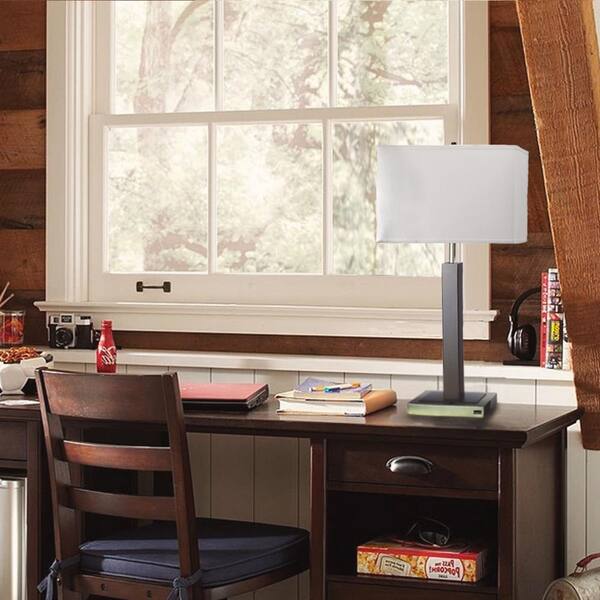Adrienne 30 in. Walnut Metal Table Lamp with Outlet and USB Port