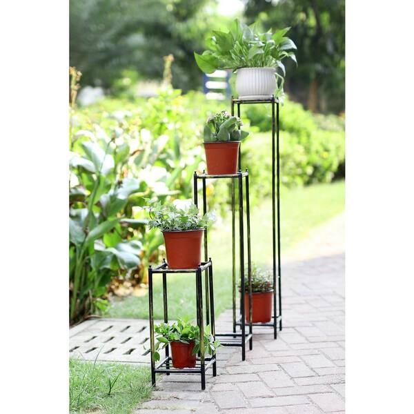 47.25 in. 4 Tier Black/Gold Cast Metal Plant Stand