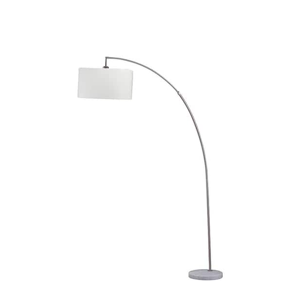 Allegro 86 in. Silver and White Marble Arc Floor Lamp with Linen Shade