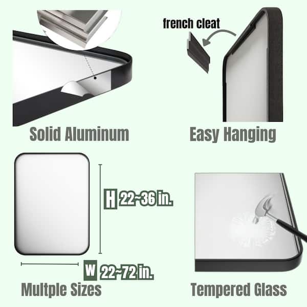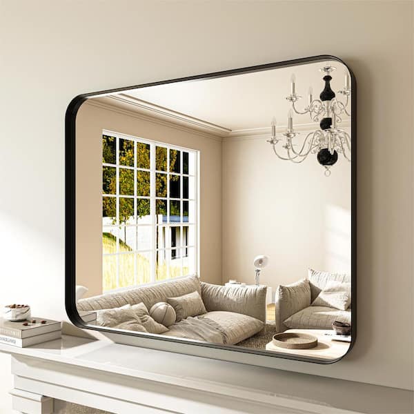 32 in. W x 40 in. H Black Aluminum Framed Modern Rounded Wall Mount Mirror