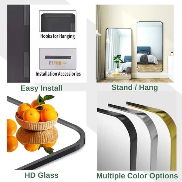 32 in. W x 72 in. H Rectangular Modern Wall Mount Mirror Black Aluminum Framed Full Length Mirror