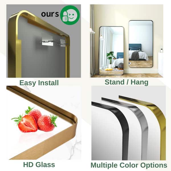 36 in. W x 60 in. H Rectangular Modern Gold Aluminum Framed Rounded Full Length Mirror