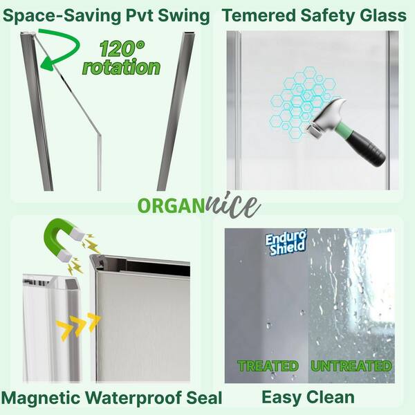 36 to 37-1/4 in. W x 72 in. H Pivot Swing Frameless Shower Door in Chrome with Clear Glass