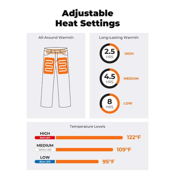 Men's 37 in. x 32 in. Black 7.38-Volt Lithium-Ion Casual Heated Pants with (1) 4. 8Ah Battery