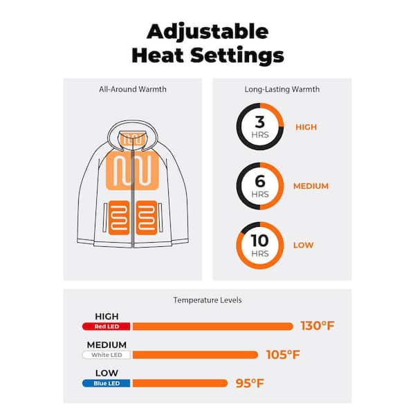 • Long-lasting heating time: up to 10 hours; 3 heating settings