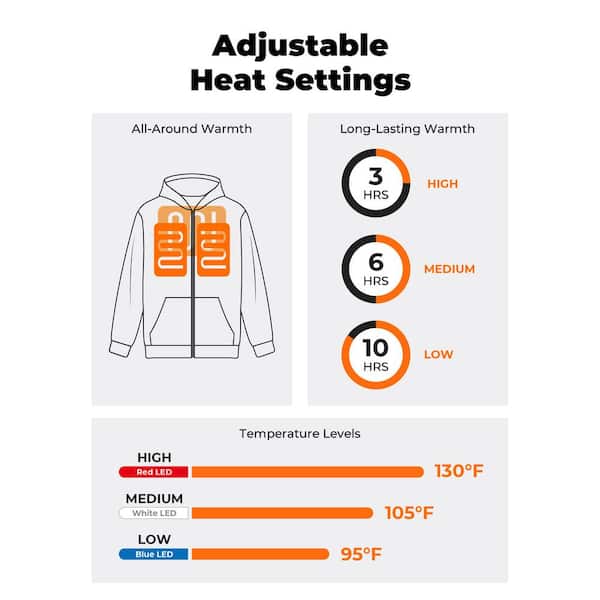 Unisex XXX-Large Gray 7.38-Volt Lithium-Ion Full-Zip Heated Jacket Hoodie with One 4.8 Ah Battery