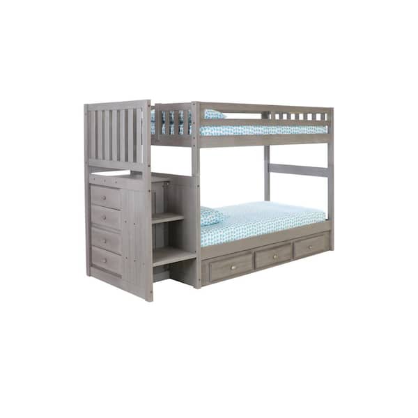 Charcoal Twin Over Twin Staircase Bunkbed with 4-Drawer Chest and 3-Drawers Under Bed