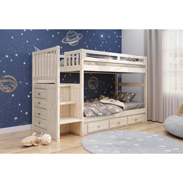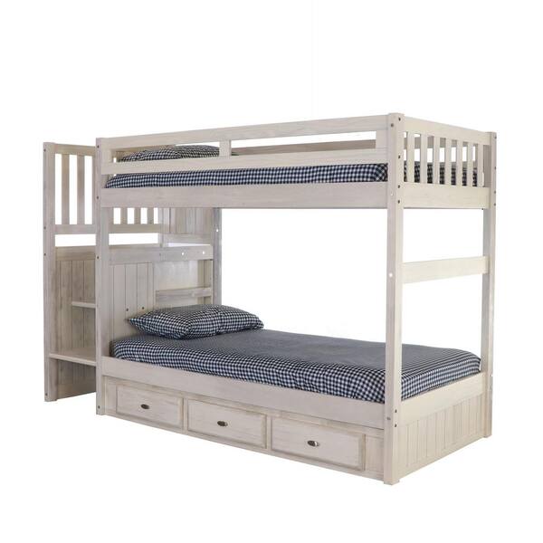 Light Ash Twin Over Twin Staircase Bunkbed with 7-Drawers