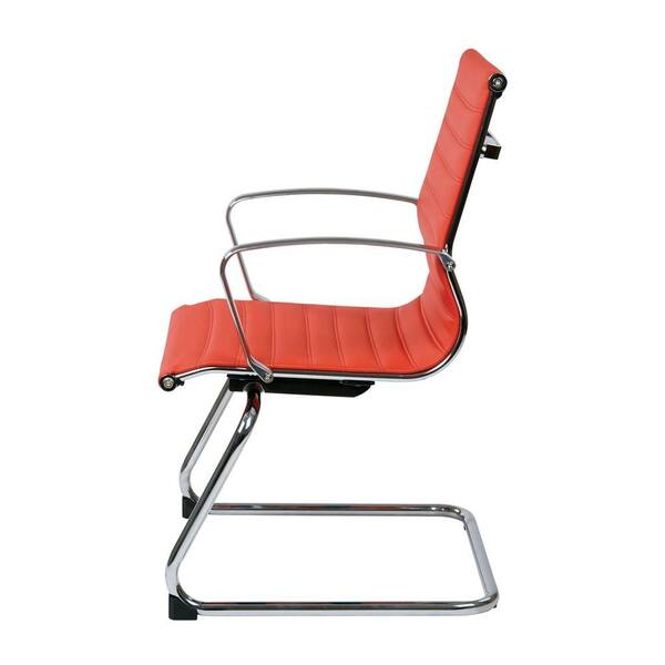 Bonded Leather Visitor Chair in Red with Polished Aluminum