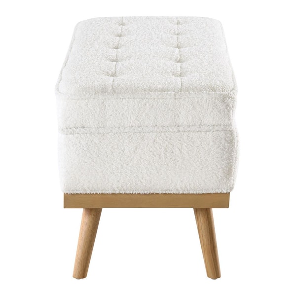 Katheryn Ivory Sherpa Fabric 43.5 in. Storage Bedroom Bench with National Wood Legs