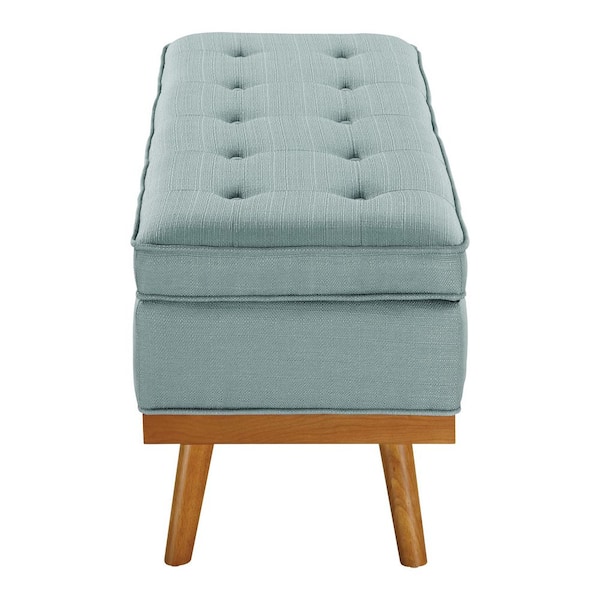 Katheryn Sea Blue Fabric 43.5 in. Storage Bedroom Bench with Spice Finish Legs