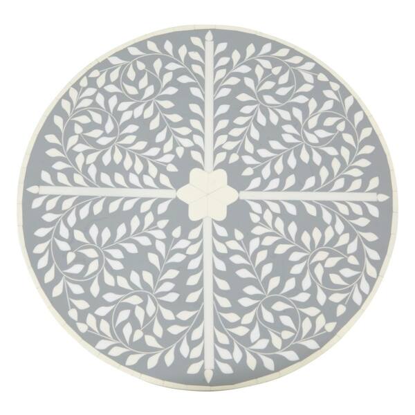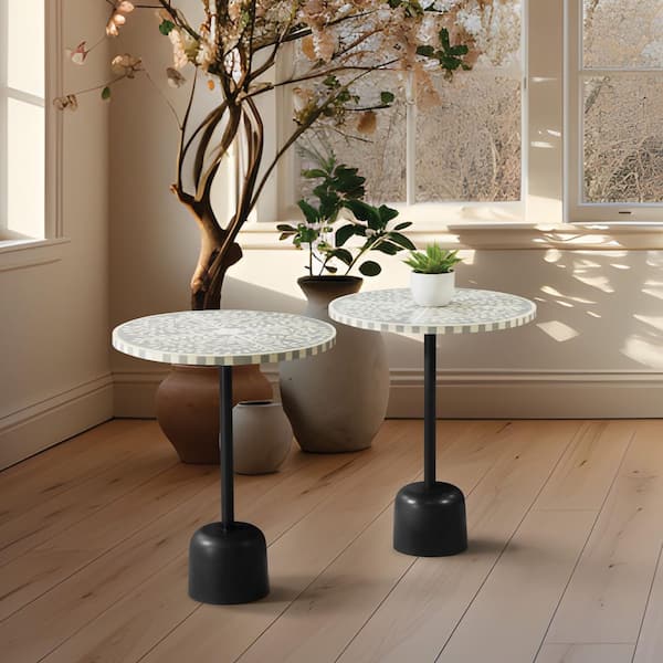 Mosaic 17 in. Resing Light Grey and White Top Round Wood Accent End Table with Black Metal Base, 2 pack