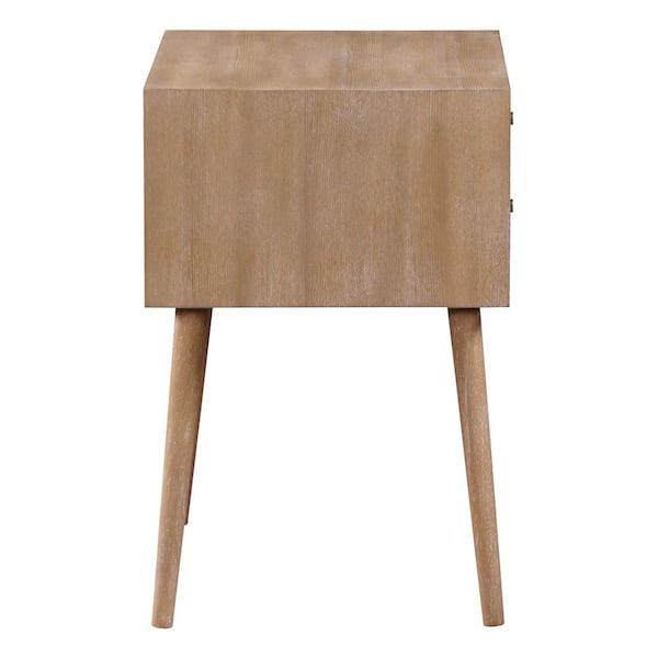 Rena Mid-Century Modern 18 in. Square Wood 2-Drawer End Table in Ash Finish