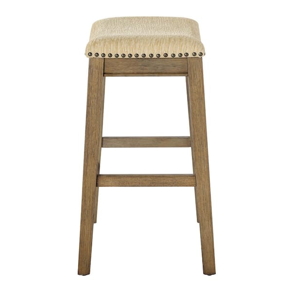 Saddle Stool 24 in. Camel Fabric with Medium Oak Wood Finish 2-Pack