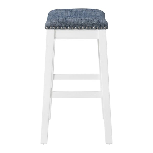Saddle Stool 24 in. Indigo Fabric with White Wood Finish 2-Pack