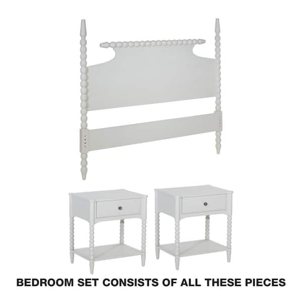 Spindle 3-Piece Sandcastle Antique White Queen Wood Bedroom Set with Nightstands