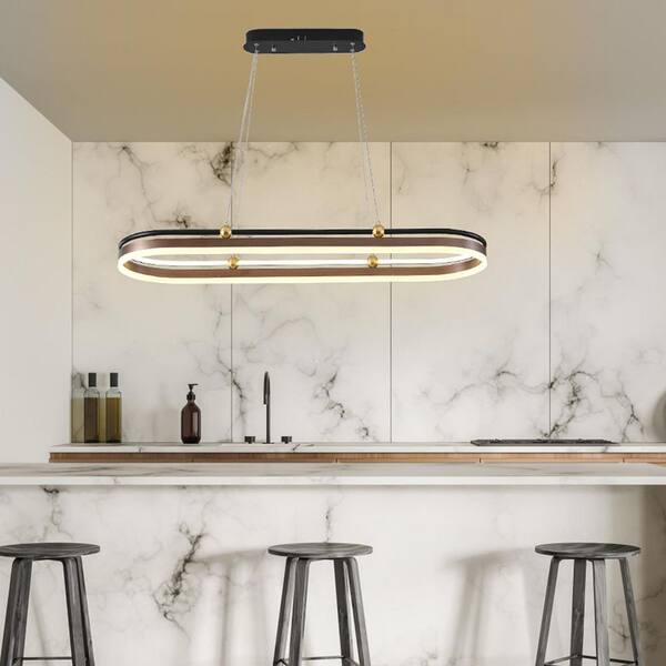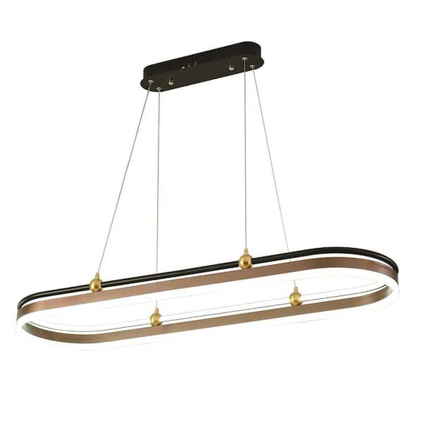 1-Light Black and Gold Modern Dimmable Integrated LED Pendant Light with Adjustable Height and Acrylic Shade