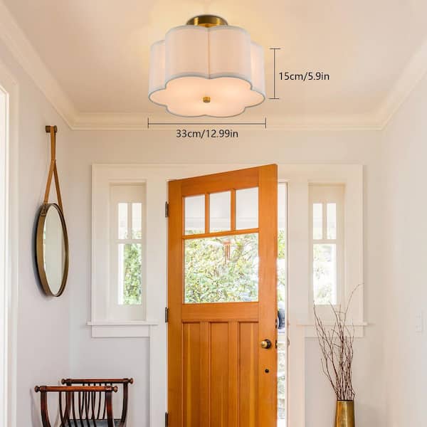 12.99 in. 3-Light Creamy White Modern Petal Shaped Semi-Flush Mount Ceiling Light with Shade and No Bulbs Included
