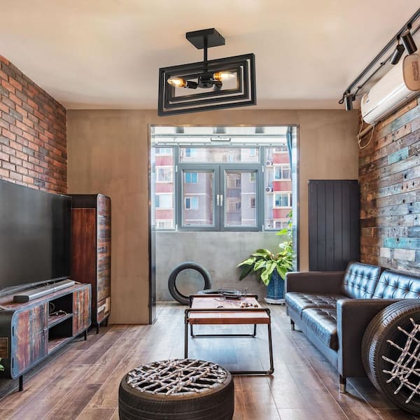 15.7 in. 3-Light Black Rustic Adjustable Frame Semi-Flush Mount Ceiling Light for Dining Room with No Bulbs Included