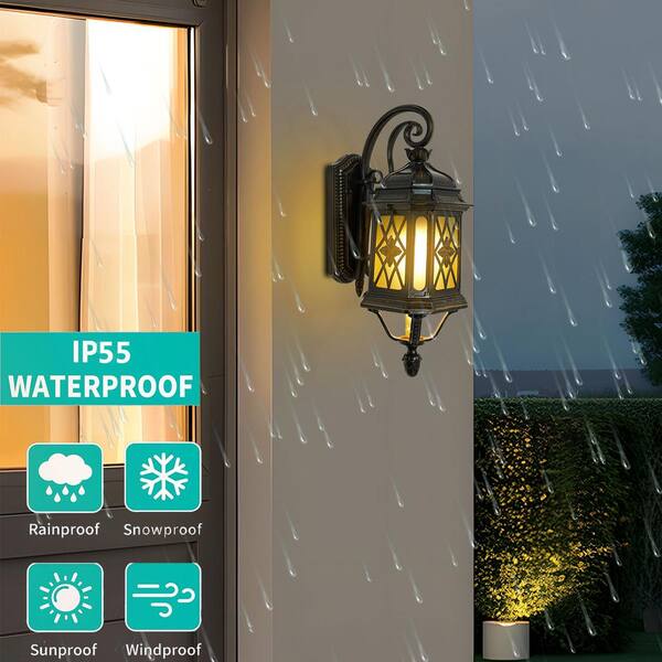 18.5 in. 1 Light Black Retro Outdoor Waterproof Wall Lantern Sconce Wall Light with Glass Shade, No Bulbs Included