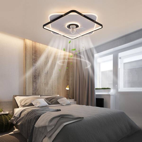 18.5 in. Indoor Black & White Modern Square 6-Speed Reversible Ceiling Fan with 3-Color Integrated LED and Remote