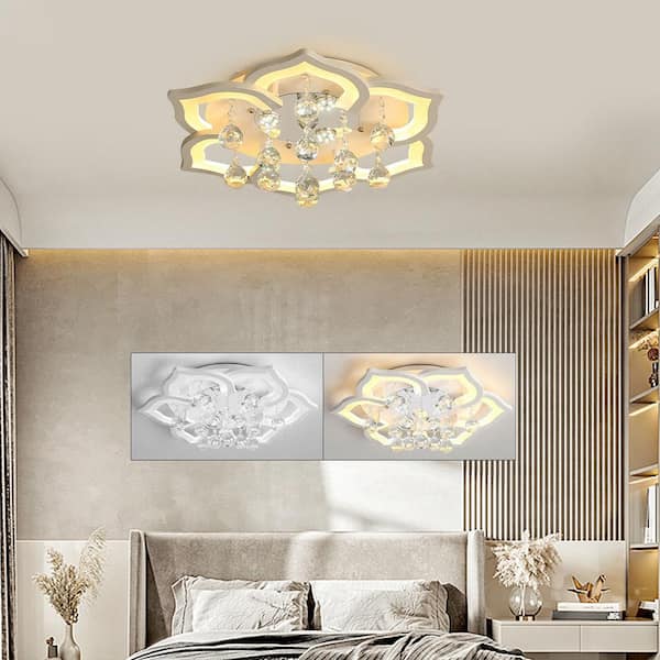 20.47 in. White Modern Flower Crystal Dimmable LED Flush Mount Ceiling Light with Remote for Bedroom Living Room