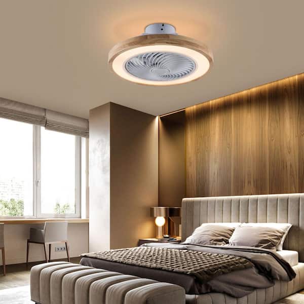 20 in. Indoor Wood Color and White Modern Round Enclosed Ceiling Fan with 3-Color Integrated LED and Remote