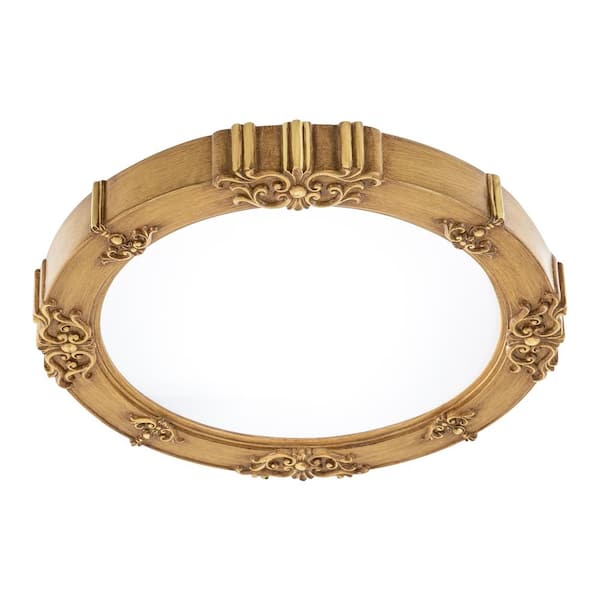 21.25 in. Wood Color Modern Round Flush Mount Ceiling Light with Acrylic Shade and Integrated LED for Bedroom