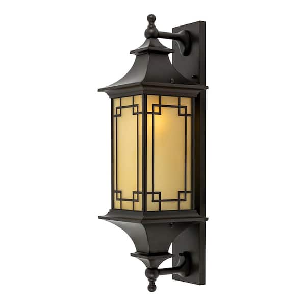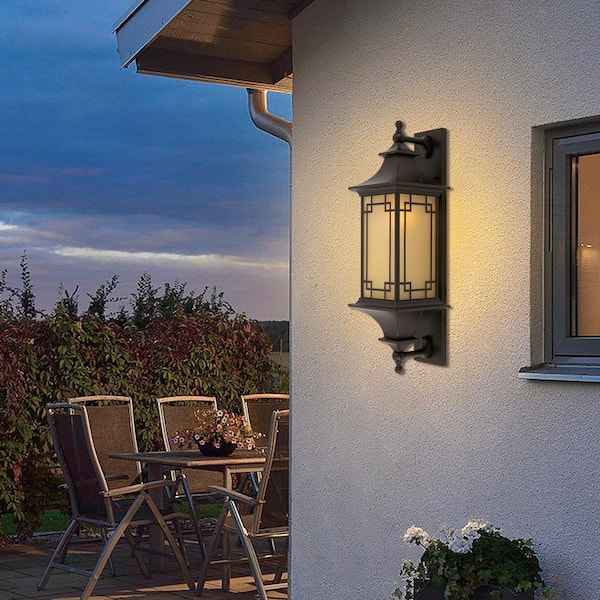 27.55 in. Black Indoor/Outdoor Waterproof Wall Light Hardwired Wall Lantern Sconce with Glass Shade, No Bulbs Included