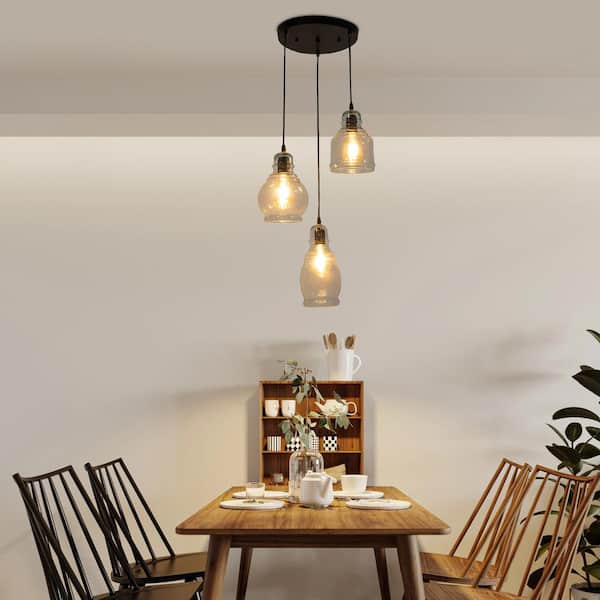 3-Light Black Modern Linear Kitchen Island Pendant Light with Clear Glass Shade and Adjustable Height, No Bulbs Included