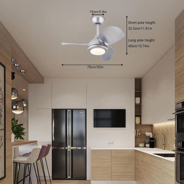 30 in. Indoor Silver Modern 6-Speed Reversible Ceiling Fan with Adjustable White Integrated LED and Remote