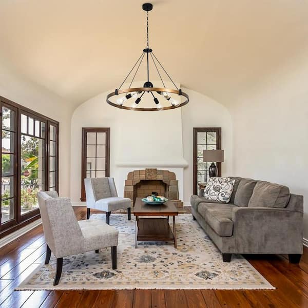 31.5 in. 6-Light Black Industrial Round Chandelier for Living Room Bedroom Kitchen Island with No Bulbs Included