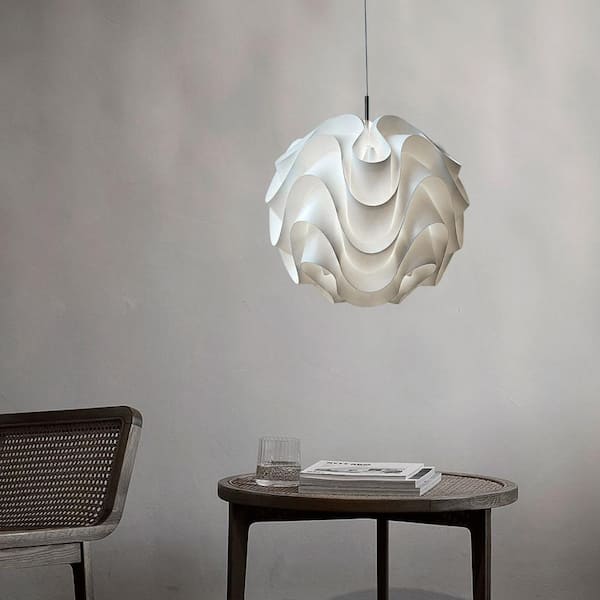 40-Watt 1 Light White Modern Pendant Light with Plastic Shade and Adjustable Height, No Bulbs Included