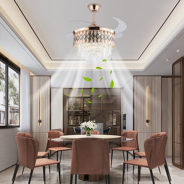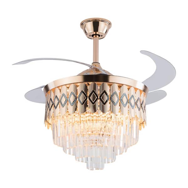 42 in. Indoor Gold Luxury Crystal Retractable & Reversible 6-Speed Ceiling Fan with 3-Color Integrated LED and Remote