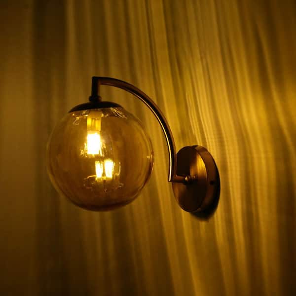 5.9 in. 1-Light Gold and Amber Modern Wall Sconce with Amber Glass Shade for Bedroom Living Room Hallway