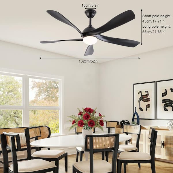 52 in. Indoor Black Modern 6-Speed Reversible Standard Ceiling Fan with Adjustable White Integrated LED and Remote