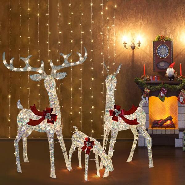 55.9 in. White Creative 3-Light Standard Iridescent Deer Plug-In Floor Lamp for Christmas Decorations Christmas Decor