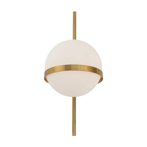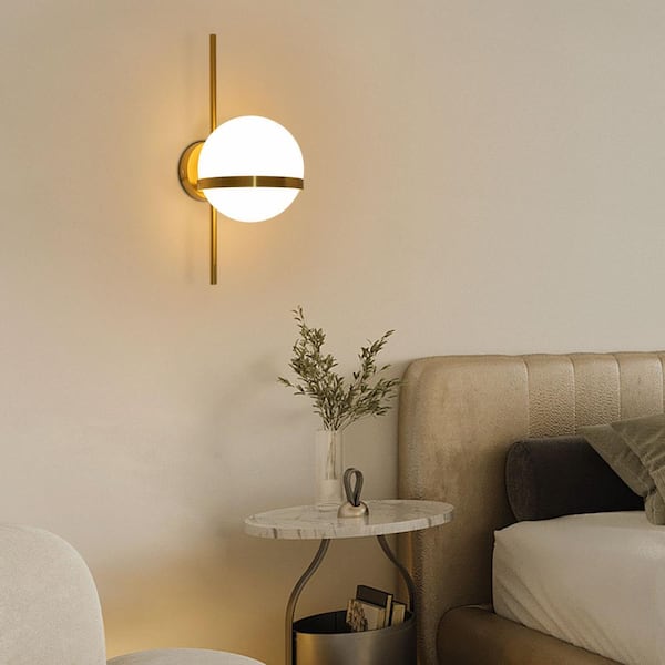 7.87 in. 1-Light Gold Modern Global Wall Sconce with White Glass Shade for Bedroom Living Room, No Bulbs Included
