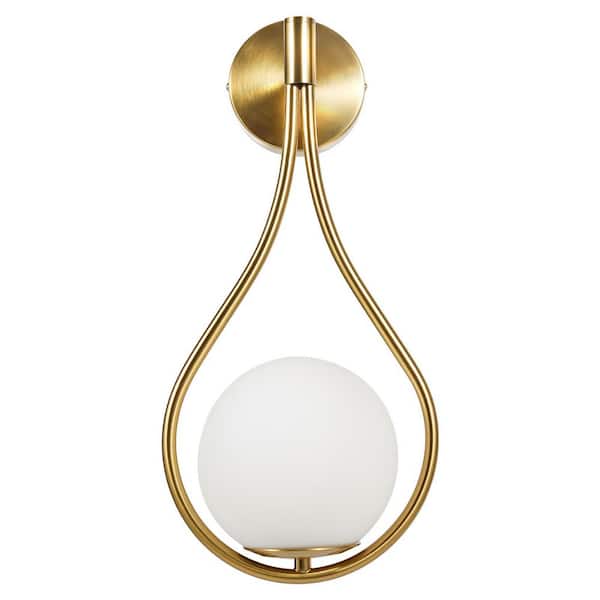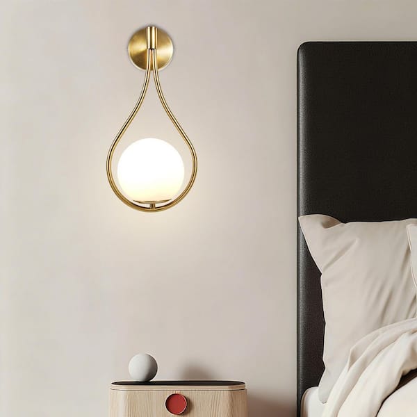 7.87 in. 1 Light Gold Modern Indoor Wall Sconce with White Globe Glass Shade for Bedroom Living Room