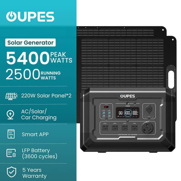2500-Watt Output/5400W Peak Solar Generator Mega 2-Expandable Push Button Start Battery LiFePO4 w/ 2-240W Solar Panels